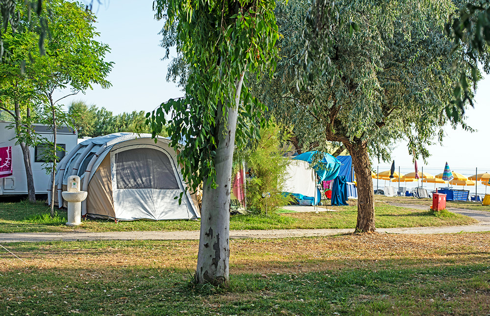 I Bungalow in muratura sono in un'area riservata, tranquilla ed esclusiva, a due passi dalla spiaggia e dal mare. Le verande recintate arredate con tavolo e sedie offrono l'opportunità di godere pienamente il verde della natura ed i colori del mare. Il verde dei nostri alberi e il blù del nostro mare sono la cornice del nostro camping.